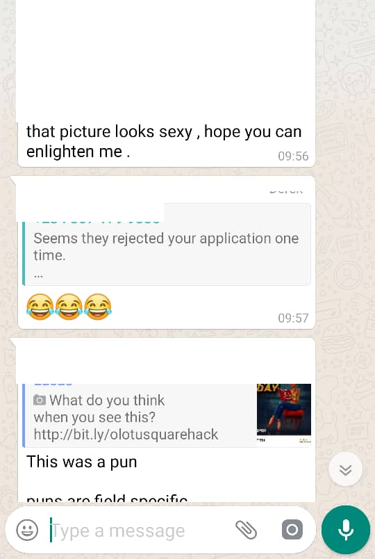 Disclaimer! We are not responsible for how you interpret this post. Our intention is simple. Convey the message that the Hack Day event organized by Olotu Square is holding on the 30th of March. We are sorry for any image or text that you find offensive. It was never our intention.