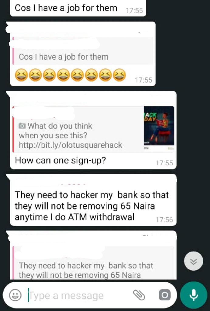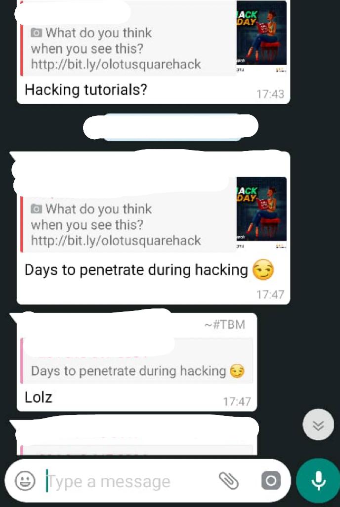 Disclaimer! We are not responsible for how you interpret this post. Our intention is simple. Convey the message that the Hack Day event organized by Olotu Square is holding on the 30th of March. We are sorry for any image or text that you find offensive. It was never our intention.