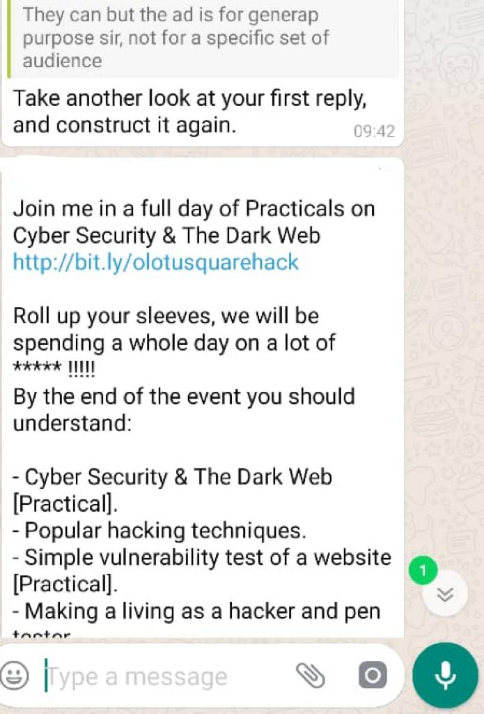 Digital Marketing Community Whatsapp conversation